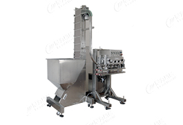 自動旋蓋機具有自動理蓋、上蓋、旋蓋功能。瓶子直線進入、連續旋蓋。