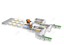 機器人碼垛機是機電一體化高新技術產品。中、低位碼垛機可以滿足中低產量的生產需要。可按照要求的編組方式和層數,完成對料袋、膠塊、箱體等各種產品的碼垛。精密的設計使得垛形緊密、整齊。