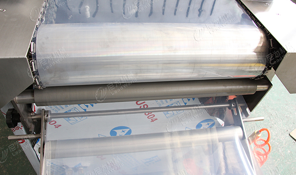 客戶來工廠驗貨,對冷凍茄子拉伸膜真空包裝機的外觀、材質、以及真空包裝機試機作業的工作效率表示滿意,且設備邊角配有廢料回收系統,有利于環保。