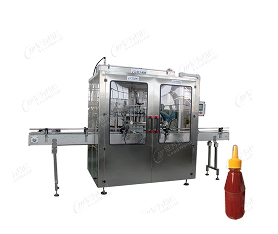 該客戶選購的是8頭濃醬灌裝機,使用伺服控制,灌裝精度0.5%~1%,料缸使用電磁閥控制液位,達到一定的量會自動關閉。軟管使用意大利進口軟管,光電使用德國勞易測光電,清洗:控制屏設有專門清洗功能,卡箍易拆易清洗,且設有防滴漏裝置。