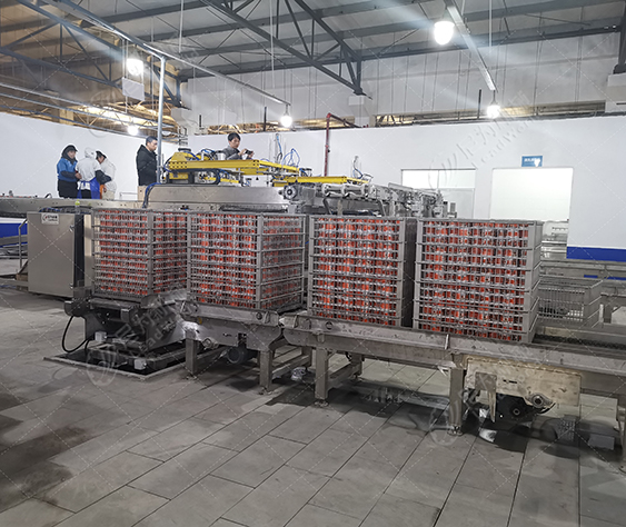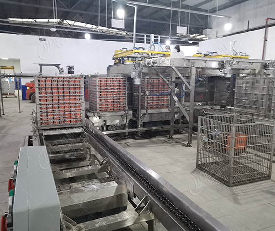 客戶的產品是馬口鐵罐紅燒肉罐頭,根據客戶的廠房面積、物料、包材特點及產量,我們?yōu)榭蛻籼峁┘t燒肉罐頭生產線設備(磁力空罐卸垛、空罐洗罐、輸送、提升、實罐清洗、裝卸籠、吹干、碼垛等設備),投產期間使用良好,后期客戶又和我司簽訂了午餐肉罐頭生產線設備合作。