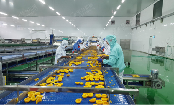 河北水果罐頭生產(chǎn)線項(xiàng)目包含前處理設(shè)備(從原料供應(yīng)至淋堿去皮)—挑選線—自動(dòng)卸垛機(jī)(玻璃瓶)--自動(dòng)洗瓶機(jī)--自動(dòng)罐裝機(jī)—自動(dòng)碼垛機(jī);該產(chǎn)線由尼為提供整套生產(chǎn)布局;