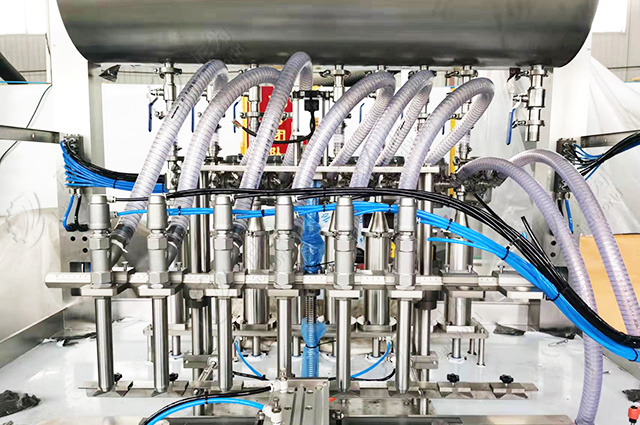 這臺設備是8頭灌裝機,一般我們的灌裝頭數量視產量而定,直線式的建議4~12頭,否則灌裝速度反而達不到預期。