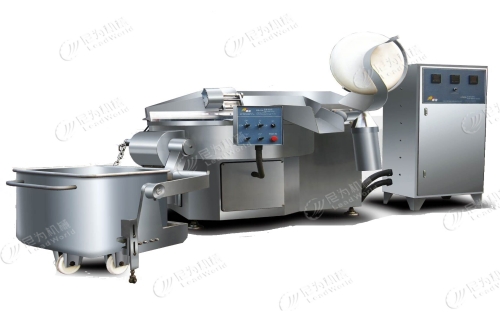 首先,將剔骨處理過的新鮮的牛肉用斬拌機(jī)切分成適當(dāng)大小,清洗后再放入預(yù)煮機(jī)中燜煮。