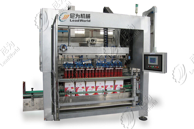 鏈輪式裝箱機主要工作方式是通過抓頭抓取設定好數量的產品放入箱內,抓頭有磁力吸取式,適合抓取帶磁力的產品,具有不傷罐的優點;有真空吸盤式,這種適用范圍廣,玻璃瓶、馬口鐵罐、塑料瓶等皆適用;有氣囊式,這種適合礦泉水瓶類的小直徑產品,氣囊抓頭吸力較強,更適合怕有跌落風險的玻璃瓶;還有海綿吸盤式,這種適合產品表面相對平整、重量較輕的袋裝產品裝箱。